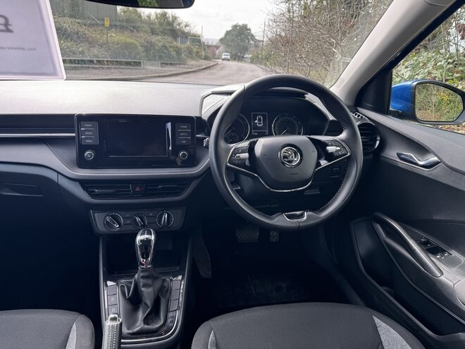 Inside, the Fabia offers a spacious and thoughtfully designed cabin with quality materials and excellent visibility, ensuring a comfortable ride for both driver and passengers. Its sleek exterior styling, highlighted by the vibrant blue finish, gives the car a fresh and contemporary look.